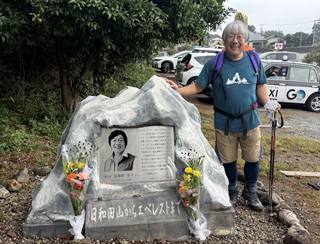 日和田山登山口には田部井淳子さんの顕彰碑(けんしょうひ)があります。