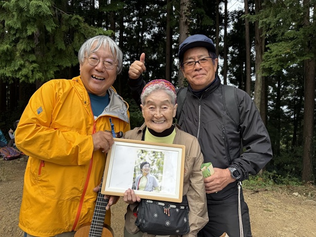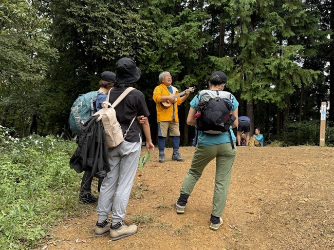 命日登山とは関係ない登山者にも田部井さんの話と歌を♪